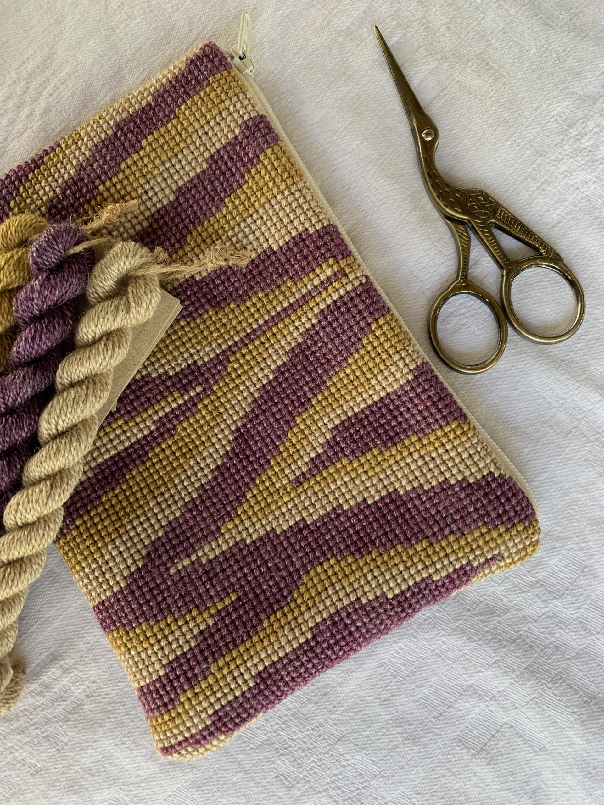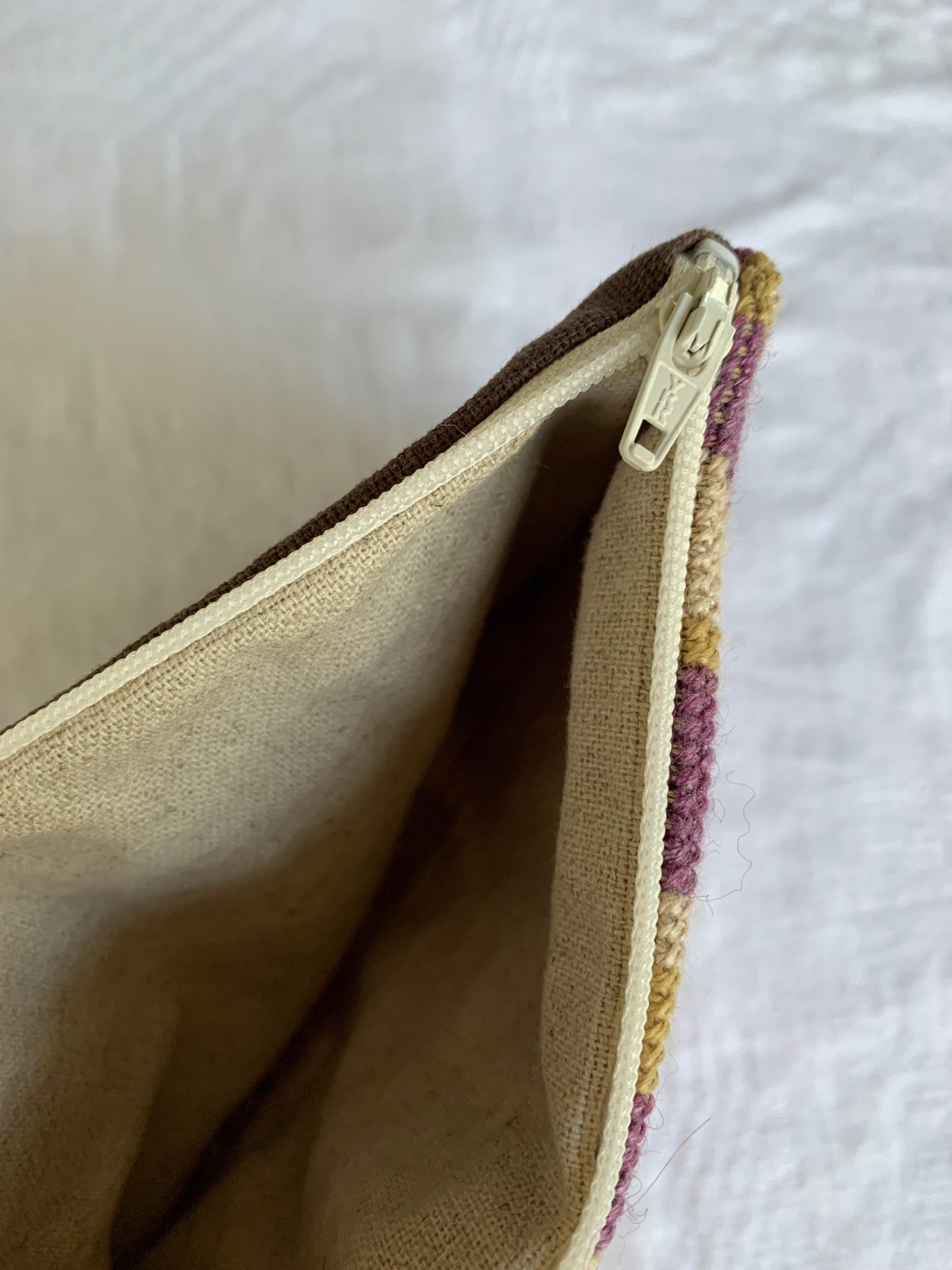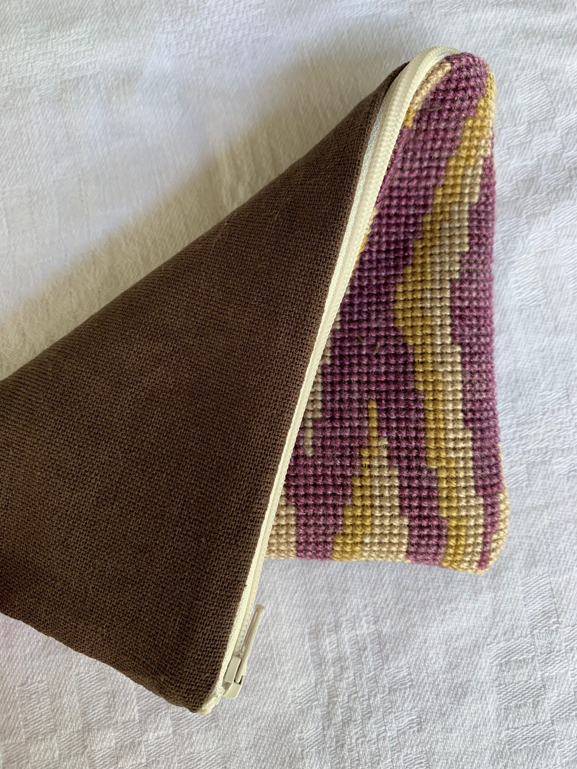 Broderi kit til en clutch. Clutchen broderes med korssting på stramaj med plantefarvet garn i en smuk uld-silkeblanding. Der er broderi på den ene side af den færdige pung. Bagsiden monteres med brun hørstof. Clutchens færdige mål er ca. 13 x 18 cm. Kittet indeholder alt hvad du skal bruge: Stramaj, garn, nål, mønster, OEKO-certificeret hør stof til for og bagside, lynlås, og udførlig monteringsvejledning.